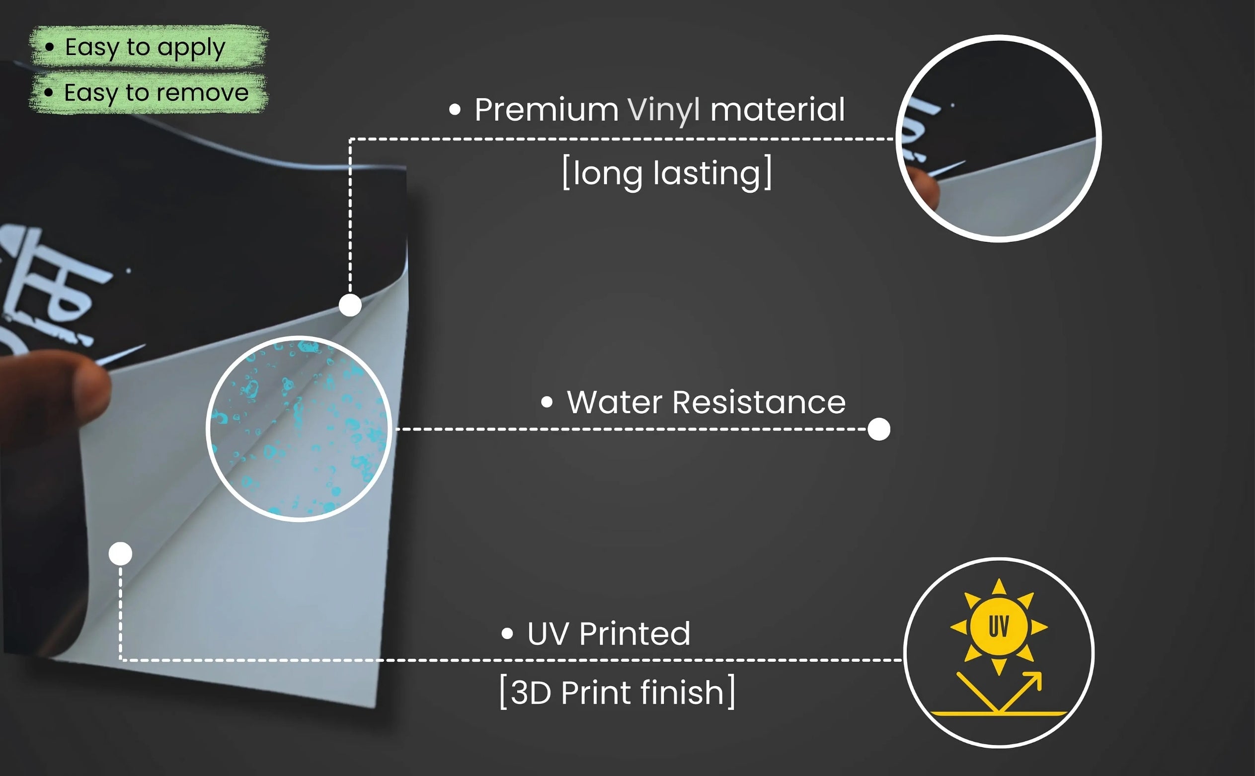 - Material Used: Premium Vinyl (Matte & Gloss finish available)