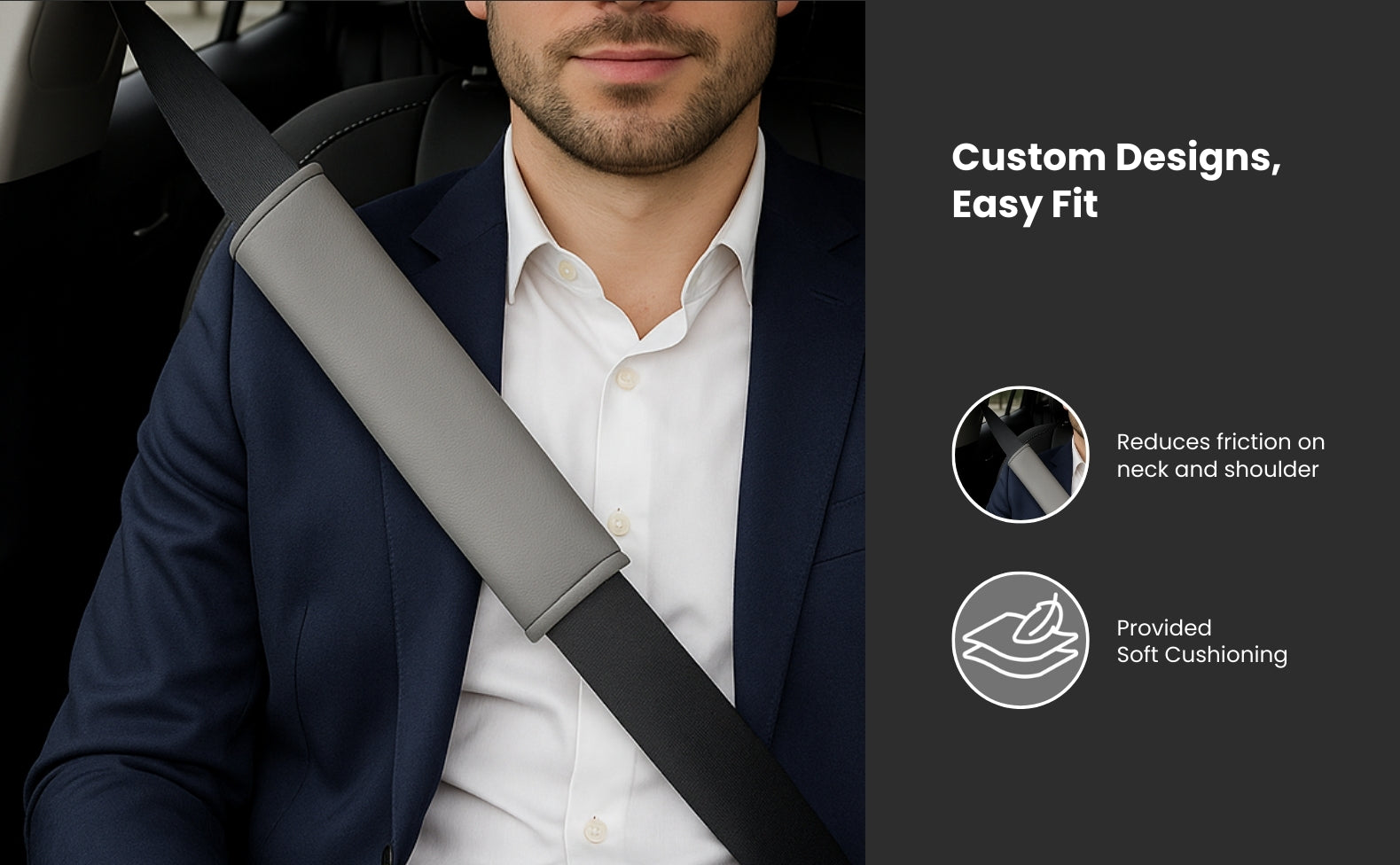 - Secure & Easy to Use: Wraps snugly around the seatbelt with a simple and strong fastening system, ensuring it stays in place without sliding or bunching.
