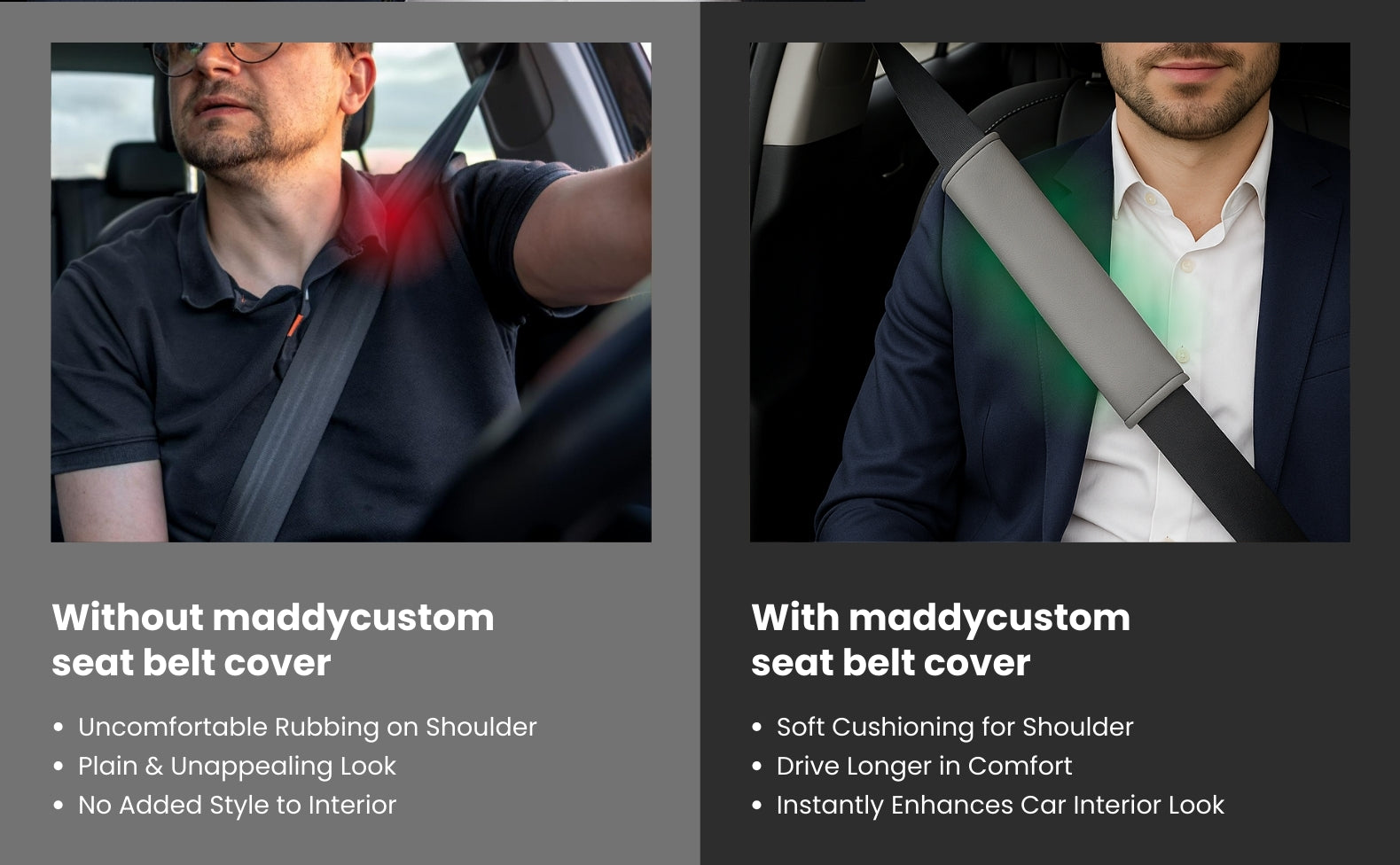 - Friction-Free Comfort: Provides a soft, cushioned barrier that protects your shoulder and clothing from the sharp edge of the seatbelt, preventing chafing and discomfort.